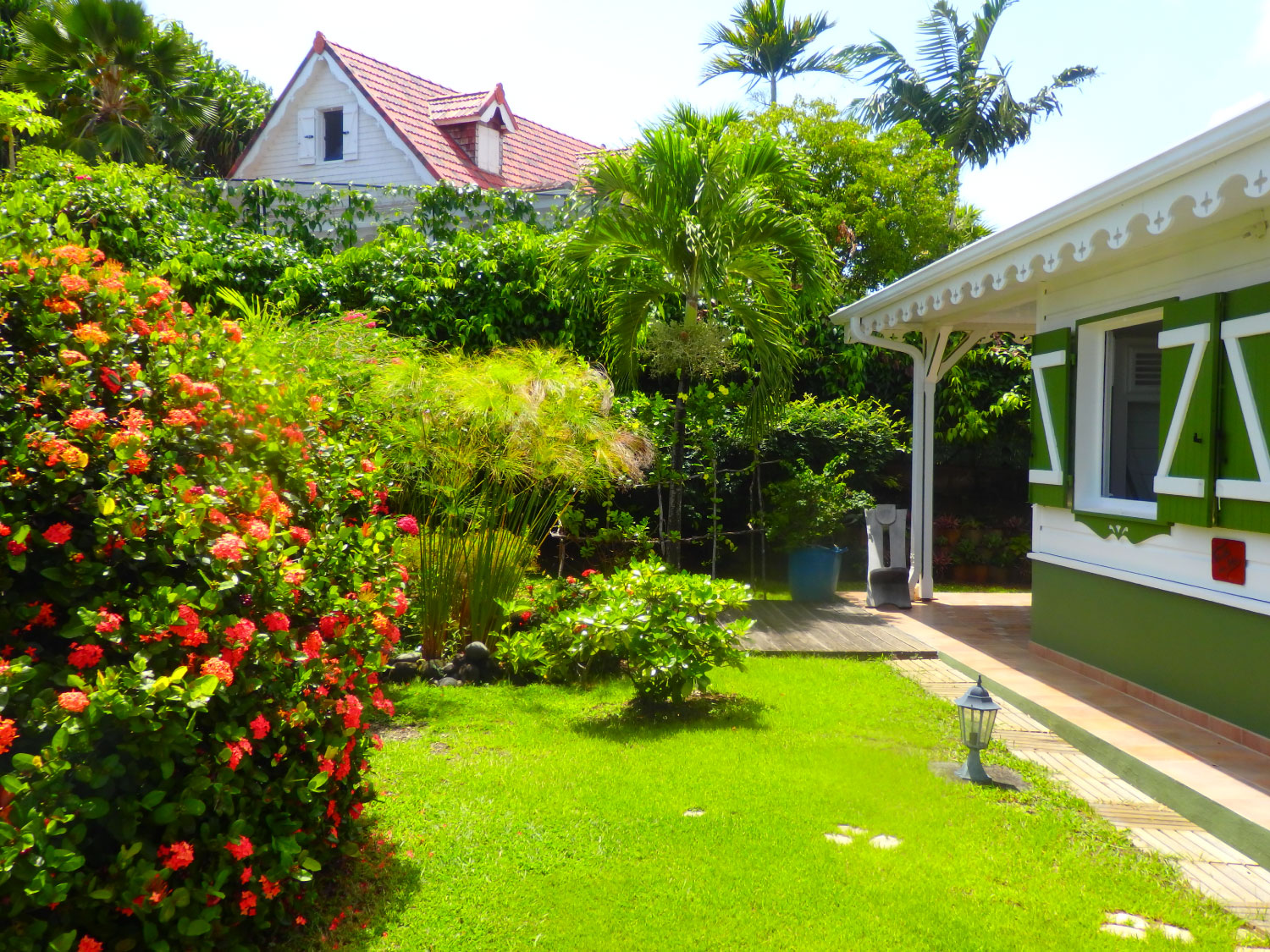 Pour réussir vos vacances à TARTANE, nous vous proposons quatre confortables studios à louer entièrement équipés et indépendants dans une agréable maison créole récente en bois. Entourés d’un jardin tropical, et situés sur une crête, nos studios de vacances en Martinique bénéficient d’une ventilation naturelle et permanente par les alizés, et offrent tous une vue exceptionnelle sur les deux côtés de la presqu’île.